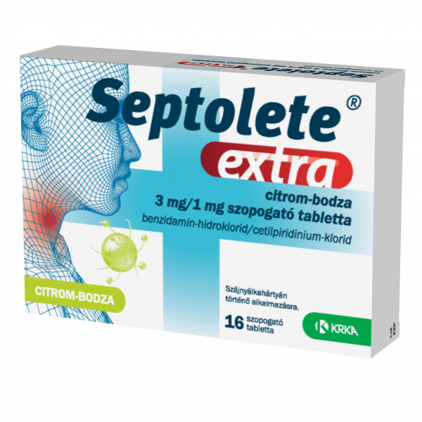A Septolete extra citrom-bodza szopogató tabletta egy gyulladáscsökkentő, fájdalomcsillapító és antiszeptikus (fertőtlenítő) hatású gyógyszer helyi alkalmazásra. A Septolete extra citrom-bodza fertőtleníti a szájüreget és a garatot, enyhíti a torokgyulladás tüneteit, például a fájdalmat, pirosságot, duzzanatot, égő érzést és a nyelési nehézséget.