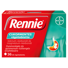 A Rennie cukormentes rágótabletta szedhető terhesség alatt az előírt adagban, de a hosszantartó alkalmazás és a magas dózisok kerülendők.