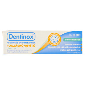 A Dentinox fogínygél egy tradicionálisan alkalmazott, enyhe hatású gyógyszer, mely az első fogak kibújásakor jelentkező tünetek (irritált fogíny, gyulladás és fájdalmas rendellenességek) helyi kezelésére alkalmazható.