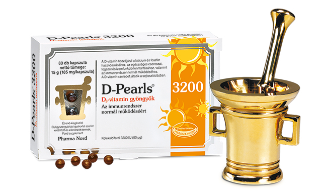 A D-Pearls D3-vitamin gyöngyök kicsi, lágyzselatin kapszulák. Minden kapszulában 3200 NE (80 µg) D3-vitamint található meg. A D-vitamint hidegen sajtolt olívaolajban oldják az emésztőrendszerben történő felszívódás javítása érdekében, mivel a D-vitamin zsírban oldódó vitamin. Méretük megkönnyíti a lenyelésüket, de rághatóak is. Kutatások kimutatták, hogy a D-Pearls nagy felszívódású a szervezetben.