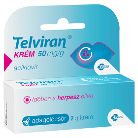 A Telviran krém hatóanyaga az aciklovir, herpeszvírus okozta bőrfertőzések helyi kezelésére szolgál. A herpeszvírus okozta bőrfertőzés eleinte bizsergést, fájdalmat, bőrpírt okoz, majd kifekélyesedő hólyagok jelennek meg a száj és az arc (ajakherpesz), valamint a külső nemi szervek bőrén (genitális herpesz más néven a nemi szervek herpesze). A Telviran krém a herpeszvírusok elpusztításával vagy növekedésük leállításával fejti ki hatását. A hatóanyaggal végzett klinikai vizsgálatok igazolták, hogy lerövidíti a gyógyulási folyamatot és a fájdalom időtartamát.