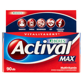 Actival Max filmtabletta komplex étrend-kiegészítő multivitamin ásványi anyagokkal és nyomelemekkel. Az Actival Max emelt C-vitamin tartalmú multivitamin készítmény. A C-vitamin, többek között, hozzájárul az immunrendszer megfelelő működéséhez, így az egészség megőrzéséhez. A termékben lévő egyéb hatóanyagok hozzájárulnak a szervezet megfelelő vitamin, ásványi anyag és nyomelem ellátottságához, ezáltal a jó közérzet és a teljesítőképesség fenntartásához. A termék fogyasztása elsősorban jelentős fizikai és szellemi igénybevétel, kiegyensúlyozatlan táplálkozás (pl. fogyókúra, vegetarianizmus, szigorú diéták), valamint betegségek utáni lábadozás esetén ajánlott.