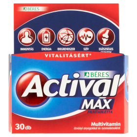 Actival Max filmtabletta komplex étrend-kiegészítő multivitamin ásványi anyagokkal és nyomelemekkel. Az Actival Max emelt C-vitamin tartalmú multivitamin készítmény. A C-vitamin, többek között, hozzájárul az immunrendszer megfelelő működéséhez, így az egészség megőrzéséhez. A termékben lévő egyéb hatóanyagok hozzájárulnak a szervezet megfelelő vitamin, ásványi anyag és nyomelem ellátottságához, ezáltal a jó közérzet és a teljesítőképesség fenntartásához. A termék fogyasztása elsősorban jelentős fizikai és szellemi igénybevétel, kiegyensúlyozatlan táplálkozás (pl. fogyókúra, vegetarianizmus, szigorú diéták), valamint betegségek utáni lábadozás esetén ajánlott.