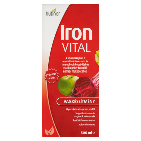 A Hübner Iron VITAL kétértékű vasat tartalmaz, melynek a felszívódását a készítményben lévő C-vitamin elősegíti. (A C-vitamin fokozza a vas felszívódását). A B2-vitamin hozzájárul a normál vasanyagcseréhez. A vas hozzájárul a normál vörösvérsejtes hemoglobin-képződéshez, valamint részt vesz a normál oxigénszállításban, hozzájárul a fáradtság és kifáradás csökkentéséhez. A kellemesen gyümölcsízű Hübner Iron VITAL alkalmazható nőknek a terhesség, szoptatás idején és vegetáriánusoknak, vegánoknak is. Az Hübner Iron VITAL nem tartalmaz mesterséges édesítőszert és színezéket.