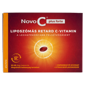 Fokozott C-vitamin igény esetére. Novo C® plus forte liposzómás retard C-vitamin megnövelt hatóanyagtartalommal, csipkebogyó-kivonattal és citrus bioflavonoidokkal. A C- vitamin hozzájárul az immunrendszer normál működéséhez, a sejtek oxidatív stresszel szembeni védelméhez a fáradtság és a kifáradás csökkentéséhez, az idegrendszer normál működéséhez és a normál pszichológiai funkció fenntartásához.