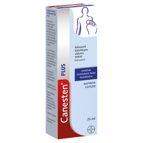A Canesten Plus spray praktikus megoldás bőrgomba esetén, alkalamzása gyorsabb és kényelmes, hatékony használatot biztosít a szőrös, ill. izzadt bőrfelületeken is. Széles hatásspektrumú készítmény, mely hatékonyan szünteti meg a gombás fertőzést, gyulladáscsökkentő és antibakteriális hatással is rendelkezik.