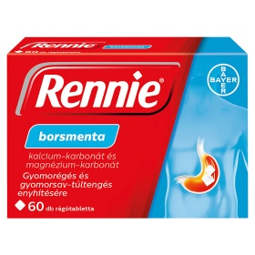A Rennie rágótabletta hatóanyagai semlegesítik a gyomorban a gyomorsavat. A készítmény gyorsan enyhíti a gyomorsav túltermelődés okozta tüneteket így a gyomorégést, savas felböfögést, emésztési zavarokat, terhességi emésztési zavarokat, epizodikus gyomorfájdalmat, teltségérzetet vagy nehéz érzetet a gyomorban, és puffadást.