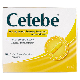 A Cetebe 500 mg retard kemény kapszula a C-vitamin hiányos állapotok kezelésére szolgál, ha az elegendő C-vitamin szükséglet az étrendben nem biztosított.