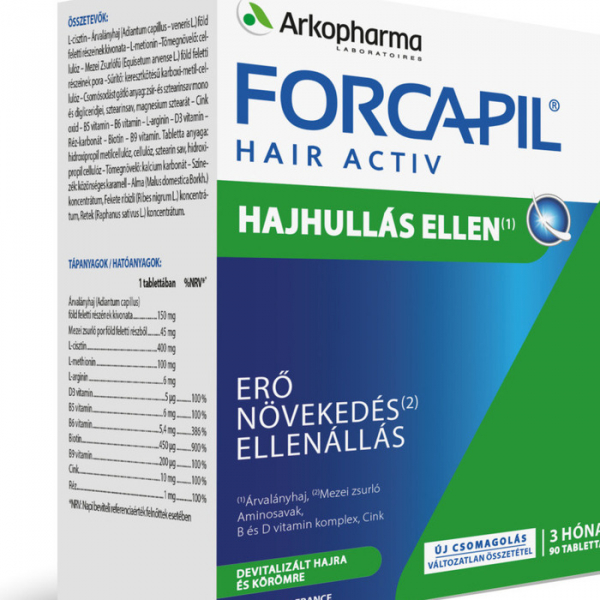 Forcapil Hajerősítő Keratin+ Kapszula természetes hidrolizált keratint tartalmaz aminosavak formájában (esszenciális, kéntartalmú aminosavak).