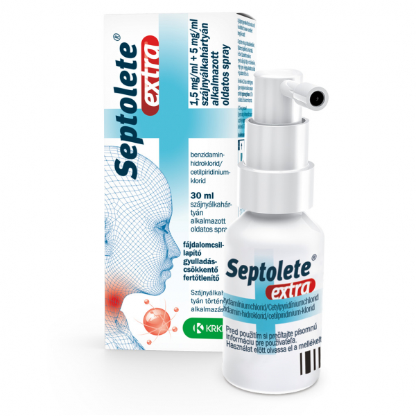 A Septolete extra szájnyálkahártyán alkalmazott spray gyulladáscsökkentő, fájdalomcsillapító és antiszeptikum helyi, szájüregi használatra. Fertőtleníti a szájüreget és a garatot, enyhíti a torokgyulladás tüneteit, például a fájdalmat, a vérbőséget, a duzzanatot, a melegséget és a nyelési nehézséget.