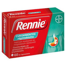 A Rennie cukormentes rágótabletta gyomorsavkötő gyógyszer, hatóanyagai a kalcium-karbonát és a magnézium-karbonát semlegesítik a gyomorban a gyomorsavat. A készítmény gyorsan enyhíti a gyomorsav-túltermelődés okozta tüneteket, így a gyomorégést, savas felböfögést, emésztési zavarokat, terhességi emésztési zavarokat, a teltségérzetet vagy nehéz érzetet a gyomorban, valamint a puffadást.
